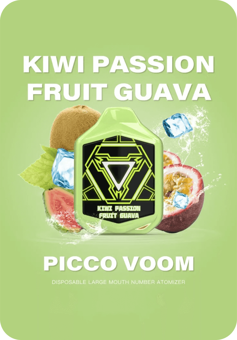 Kiwi Passion Fruit Guava Voom PICCO 7K delivers a harmonious blend of tangy kiwi, sweet passion fruit, and juicy guava notes, creating a crisp, refreshing, and vibrant flavor perfect for all-day vaping.