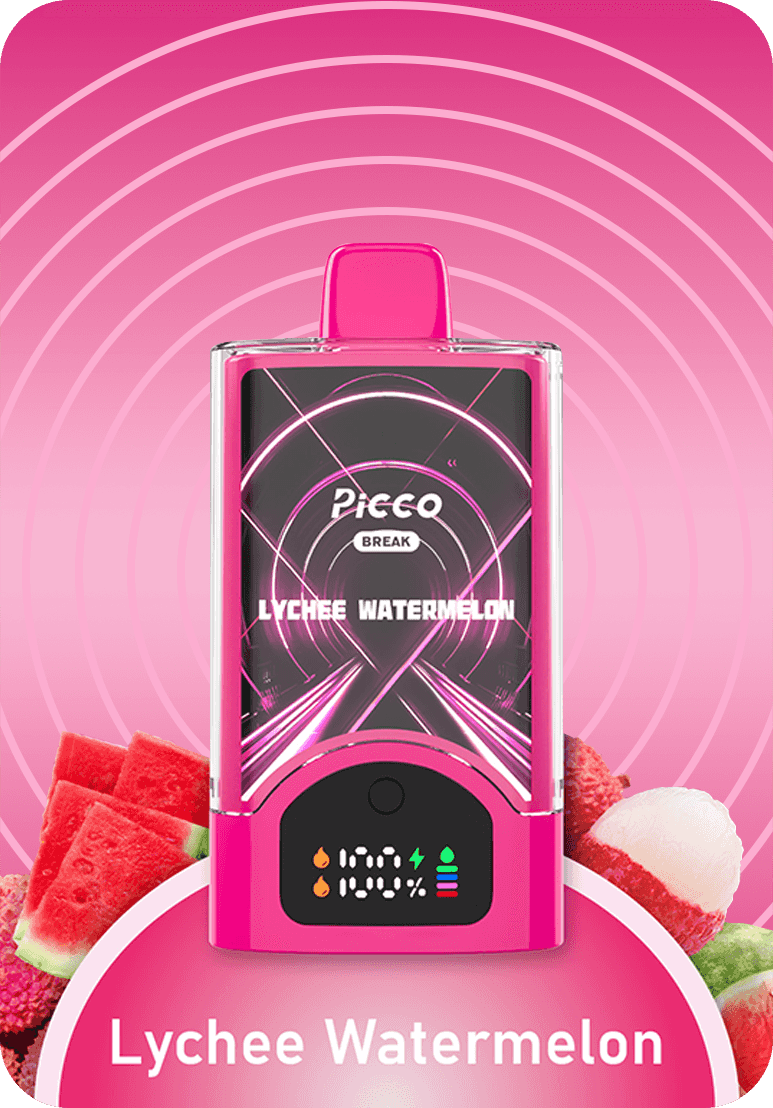 Engineered with advanced mesh coil technology, Lychee Watermelon Break PICCO 30000 Puffs ensures optimized airflow and dense vapor production. This 30K disposable vape maintains reliable performance from the first puff to the final inhale.