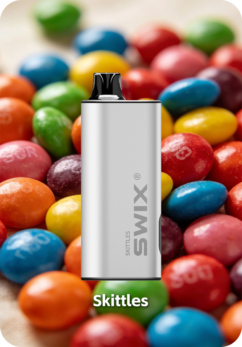 The Skittles SWIX 9K Australia comes pre-filled with a massive 22ml of premium e-liquid, ensuring a long-lasting 9,000-puff experience.